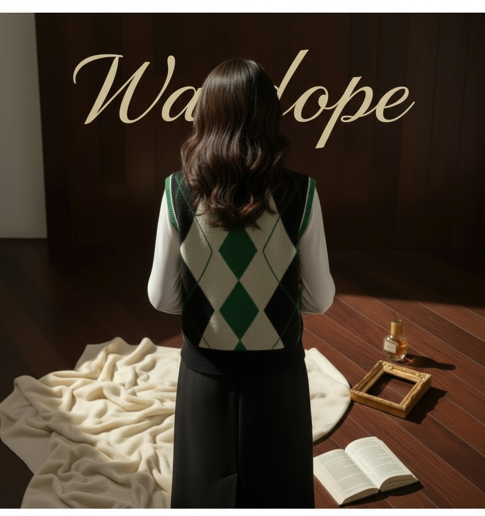 Elevate your preppy style with this chic argyle knit vest featuring a classic green, black, and cream diamond pattern. Designed with a sleeveless cut and a V-neckline, this cozy button-down vest brings timeless vintage charm with a modern twist. Perfect for layering over shirts, turtlenecks, or dresses for an effortlessly stylish look.