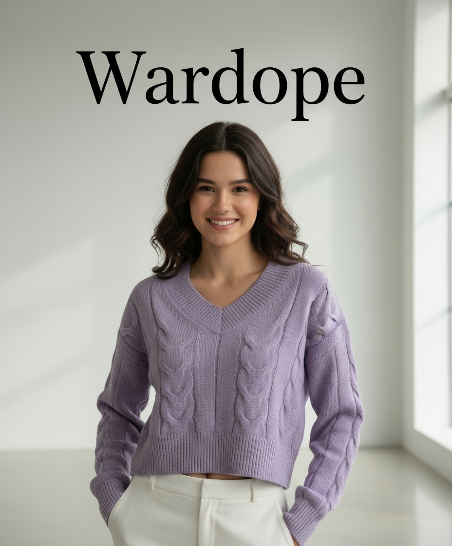 Stay stylish and cozy this winter with this elegant lavender cable knit sweater. Featuring a soft, thick fabric with chunky cable detailing and a flattering V-neck design, it’s perfect for adding a feminine touch to your winter look. The cropped fit pairs beautifully with high-waisted jeans or skirts, making it a trendy must-have for the season.