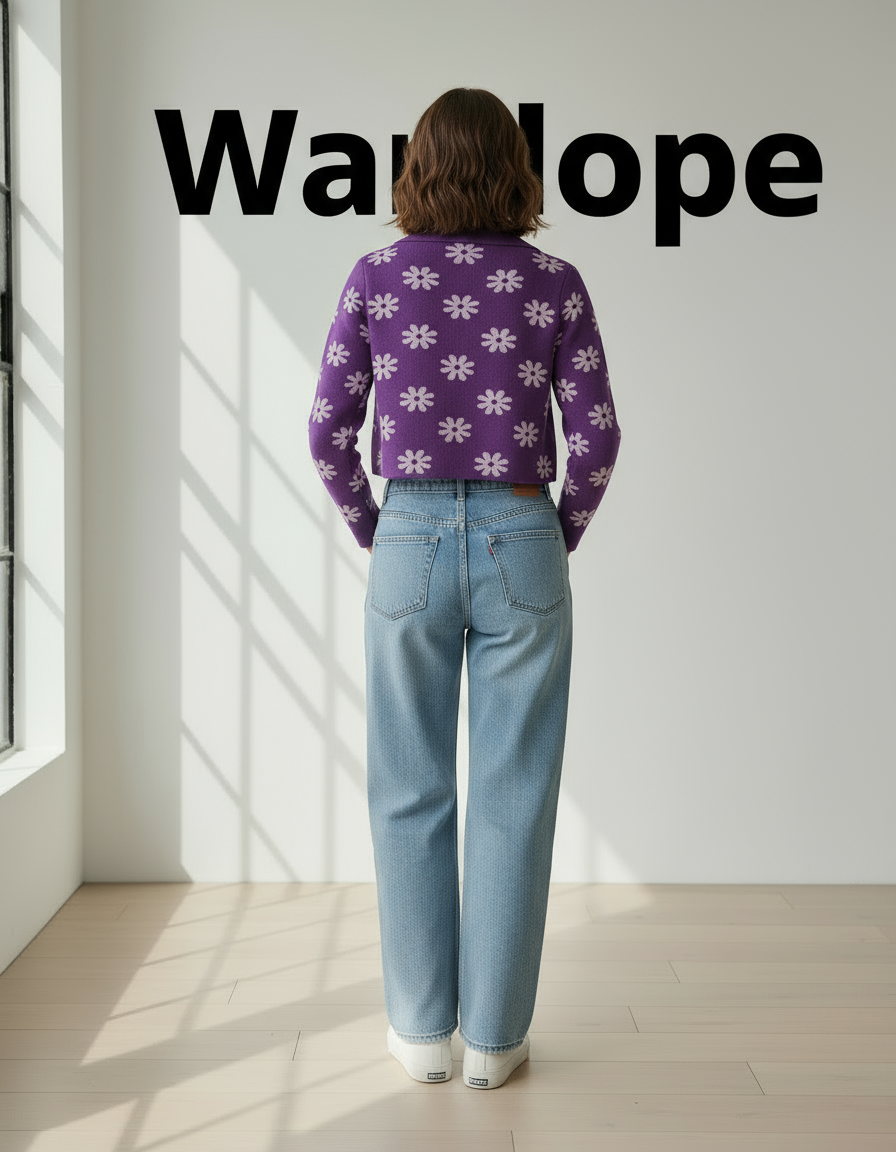 💜 Women Purple Daisy Print Collared Knit Sweater ( Exclusive Edition )