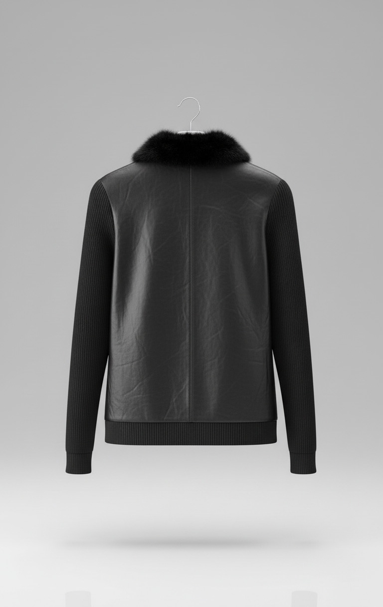 Crafted with a sleek faux leather body and ribbed knit sleeves, this piece delivers texture, contrast, and structure in one effortless silhouette. The soft faux fur trim along the collar and front zipper line adds a luxurious touch that elevates your entire look.